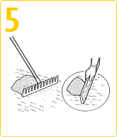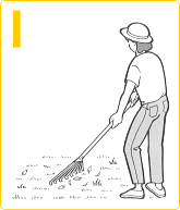 | 刈りカスは根腐れや病虫害の原因になります。「熊手」でかき取り、そのまま置かずに必ず捨てるようにします。